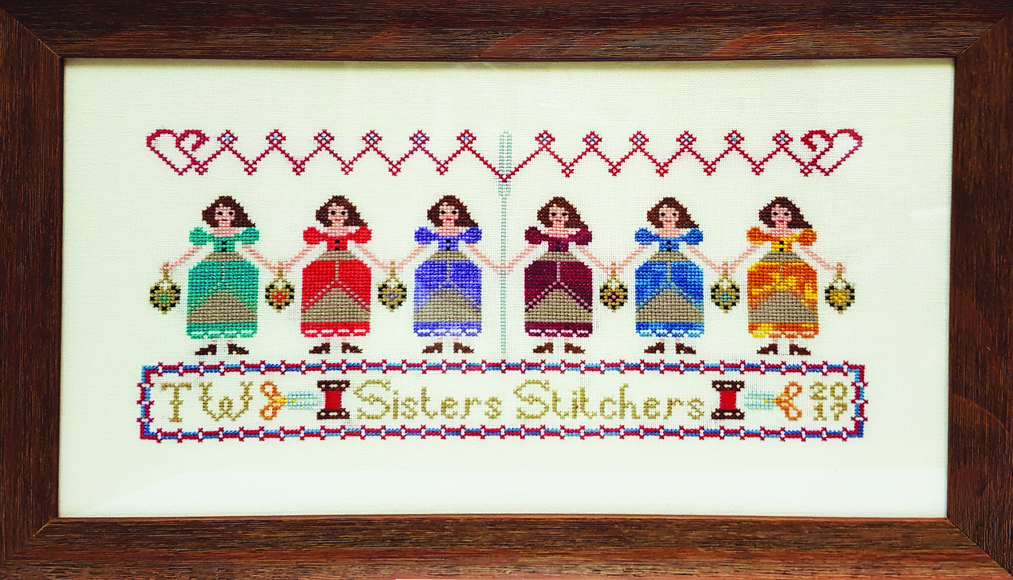 Model was stitched on 32 Count Linen Cream with DMC Threads and Week Dye Works.